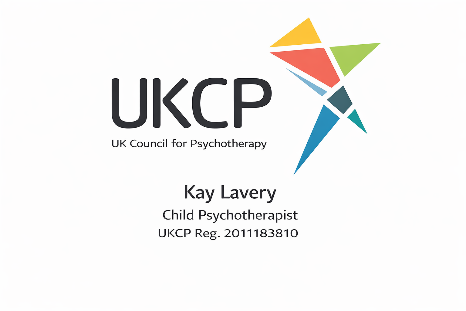 I'm a Registered Child Psychotherapist and full clinical member of UKCP (UK Councill for Psychotherapy) for my work with children and young people. I am also a Member of BACP (British Association for Counselling and Psychotherapy) to support my work with adults. You can search for me, Kay Lavery, on the UKCP or BACP online directory of therapists if you wish to verify authenticity